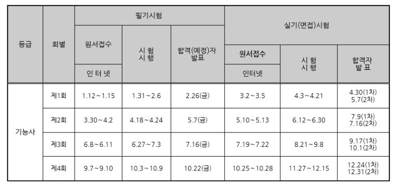 2021년 기능사 시험일정