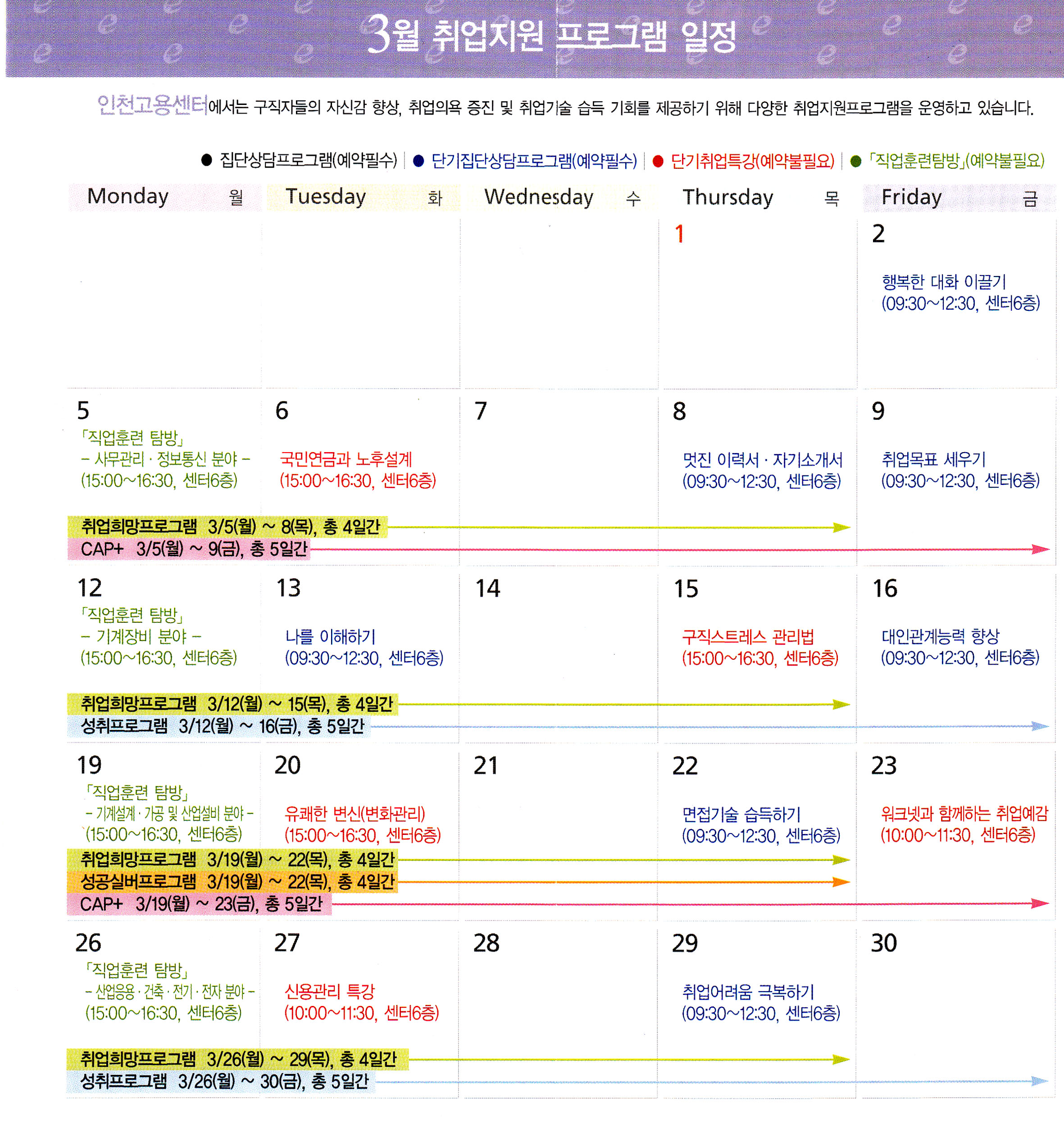 3월 취업지원프로그램일정